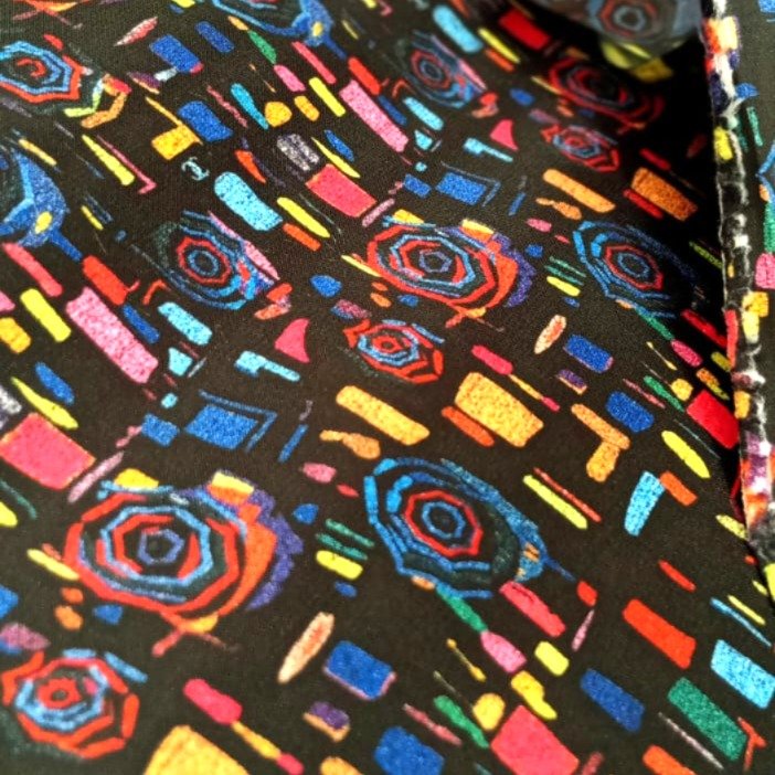 Give your blazer a modern edge with this abstract multicolor inner lining. Featuring bold geometric shapes and vibrant color accents on a dark base, this design creates a striking and contemporary look.